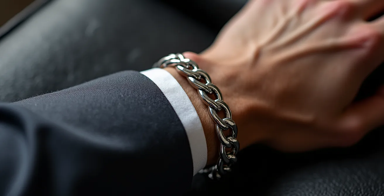 Le contexte est également roi. Les codes ne sont pas les mêmes dans tous les milieux professionnels. Dans les secteurs formels comme la finance ou le droit, la discrétion est absolue : une gourmette fine, portée sous la manche de la chemise, est tolérée. Dans les milieux créatifs, l’expression est plus libre, et une accumulation maîtrisée (« stacking ») peut être une signature de style. Le luxe à la française valorise particulièrement la patine naturelle : une gourmette en argent qui a vécu et porte les marques du temps raconte une histoire et possède une âme, contrairement à la culture du « bling » immaculé qui exige un éclat permanent.