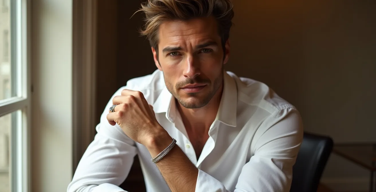 Contrairement à l’idée reçue, l’élégance masculine ne réside pas dans la discrétion à tout prix, mais dans la capacité d’un bijou à raconter une histoire cohérente avec celui qui le porte.